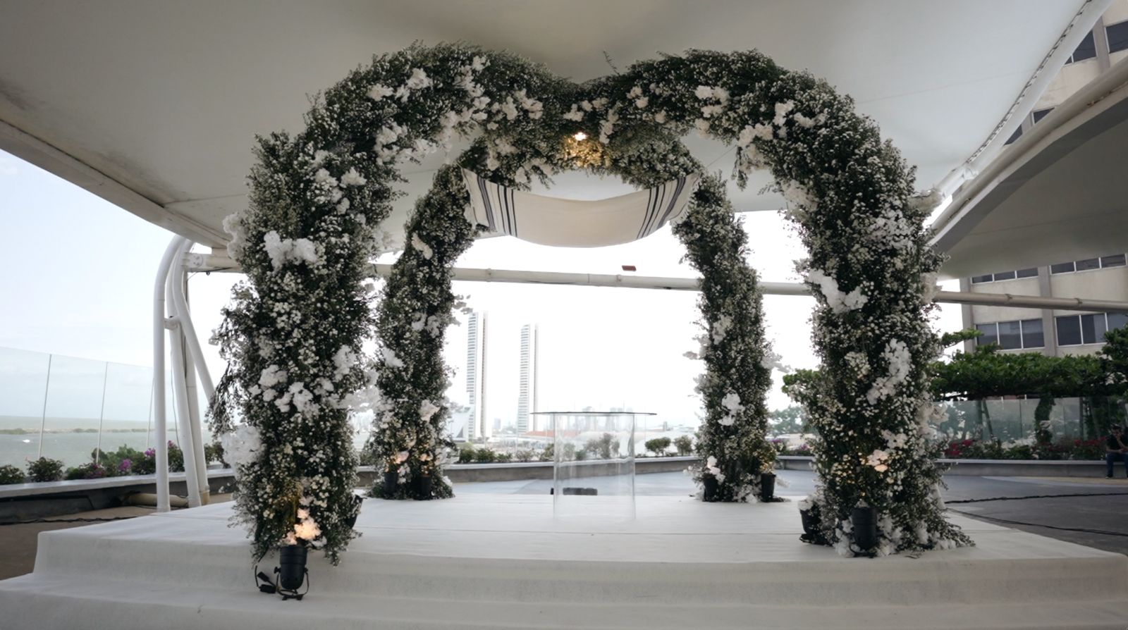Um rooftop exclusivo com vista panorâmica da cidade, perfeito para cerimônias, coquetéis e momentos marcantes.